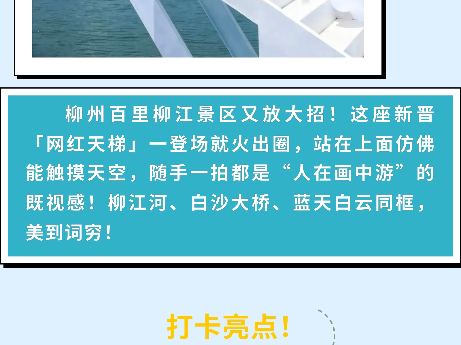 柳州新晉頂流打卡點!東堤旅游碼頭天梯×游艇!隨手一拍就是大片! 發(fā)布時間:2025年05月06日 16時來源:本站原創(chuàng)瀏覽:201 人次