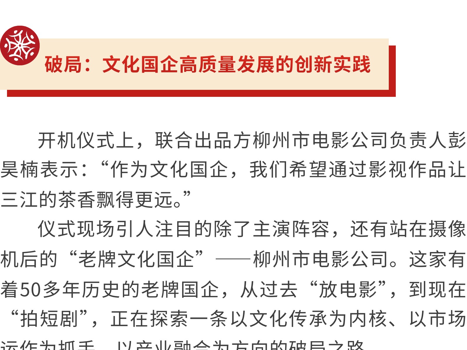 柳州國企攜手優(yōu)秀影視團隊打造本土非遺文化短劇,積極探索柳州影視文旅發(fā)展新路徑! 發(fā)布時(shí)間:2025年07月22日 10時(shí)來(lái)源:本站原創(chuàng )瀏覽:128 人次