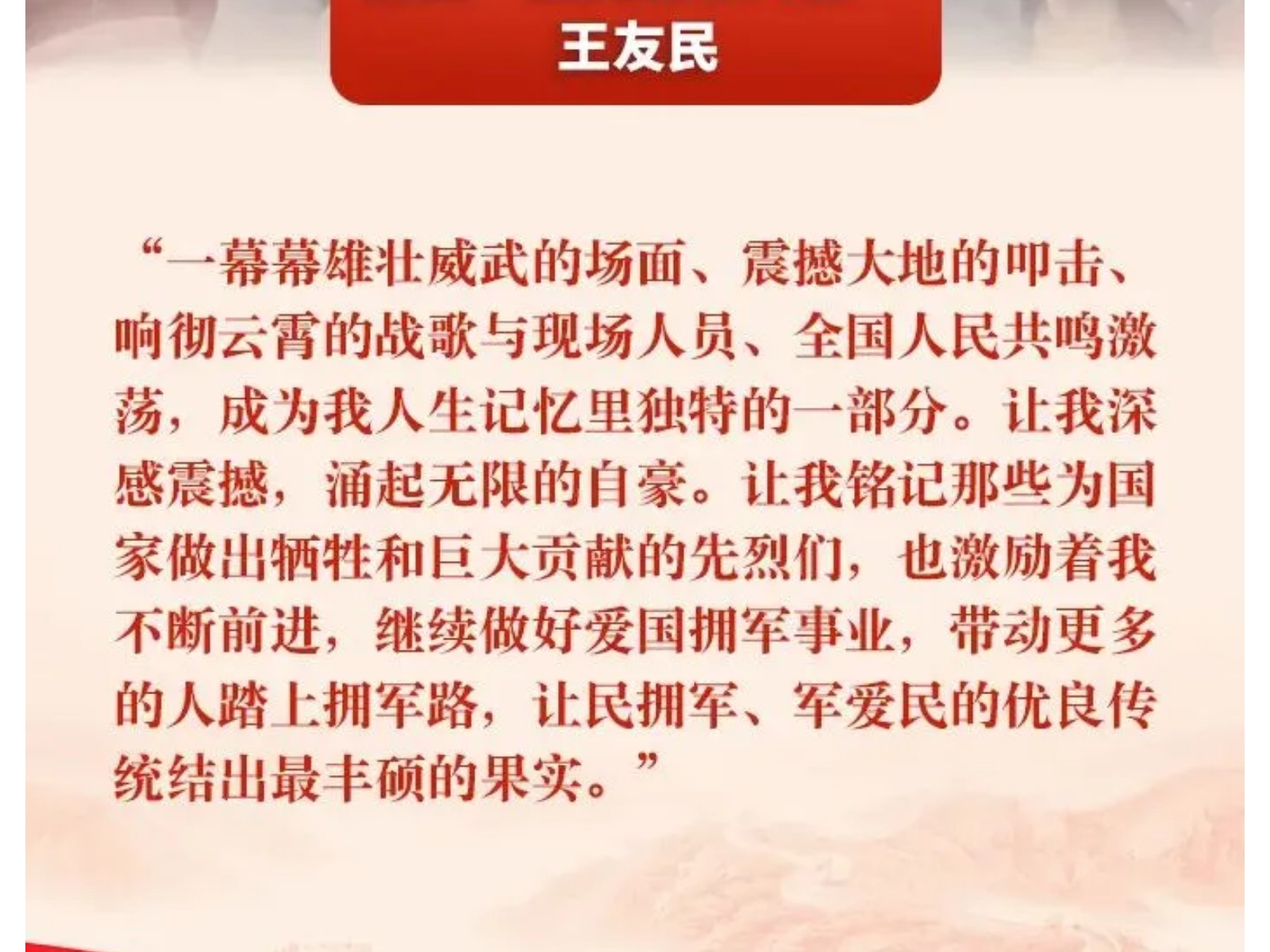 【最美擁軍人物】九三閱兵觀(guān)禮臺上的雙擁身影,他們是誰(shuí)? 發(fā)布時(shí)間:2025年09月19日 10時(shí)來(lái)源:本站原創(chuàng )瀏覽:86 人次