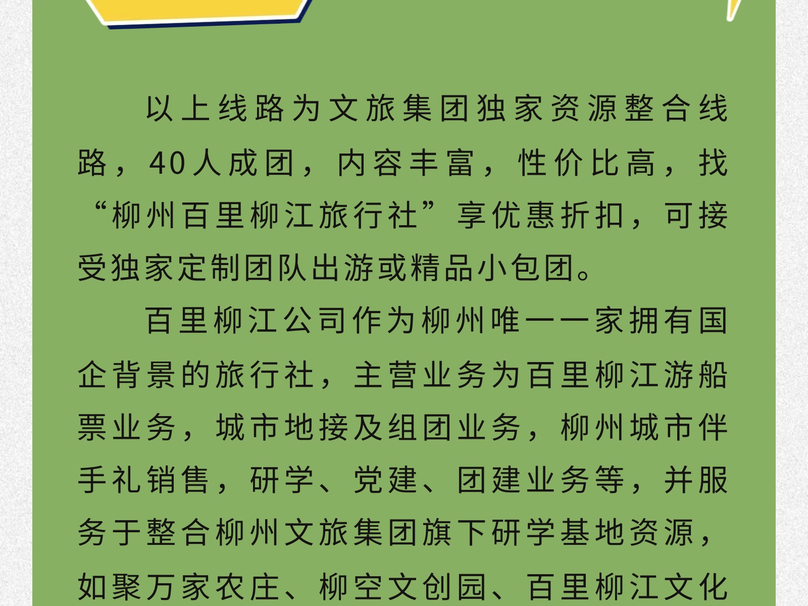 百里柳江旅行社專(zhuān)屬特色線(xiàn)路重磅發(fā)布!主題一日游獨家推薦! 發(fā)布時(shí)間:2025年11月01日 10時(shí)來(lái)源:本站原創(chuàng )瀏覽:47 人次
