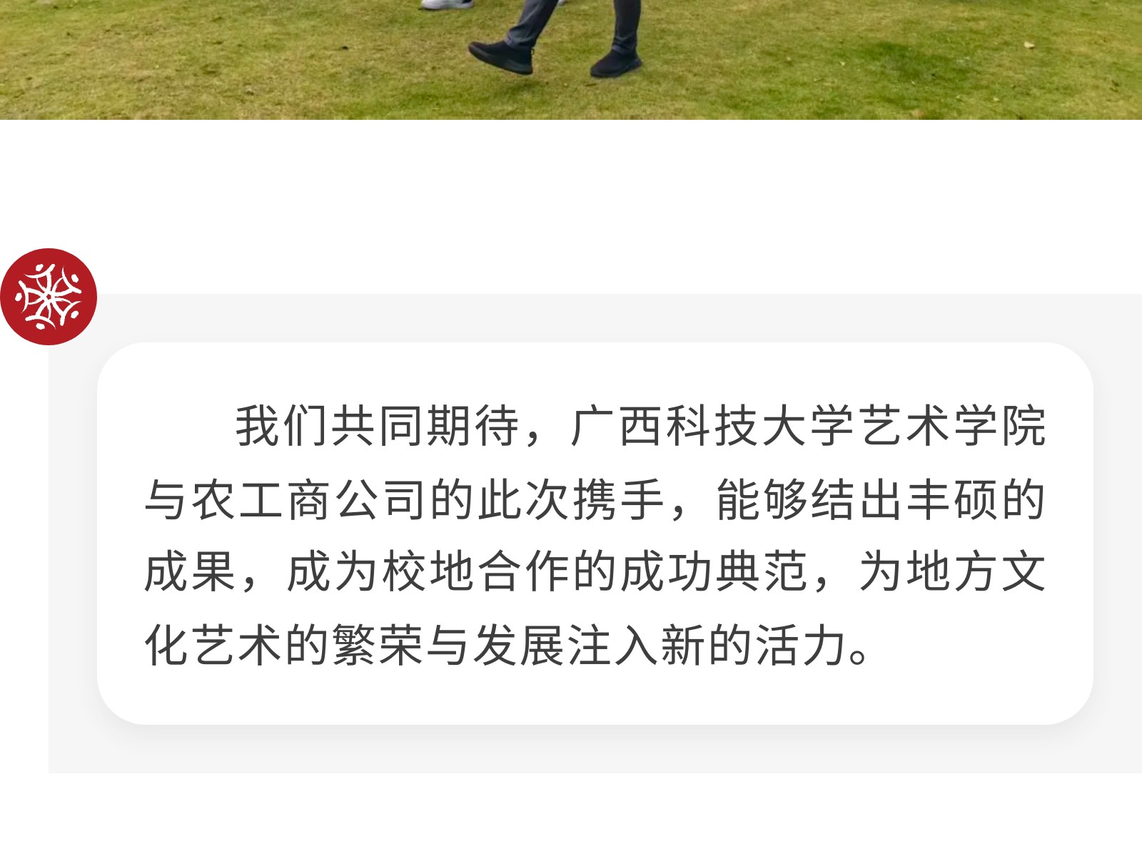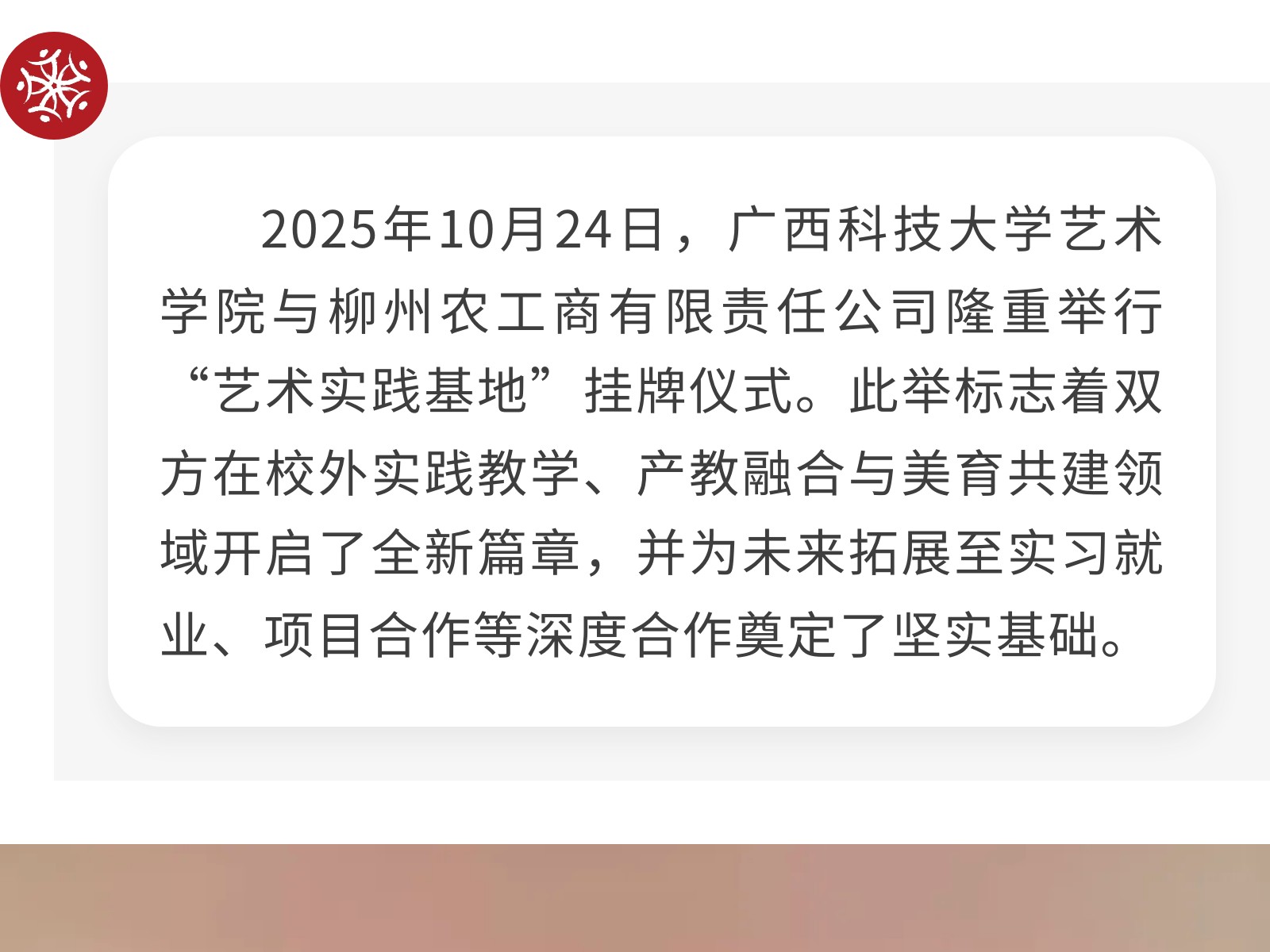 【校企攜手 共育英才】廣西科技大學(xué)藝術(shù)學(xué)院與柳州農工商公司正式簽署校企合作協(xié)議 發(fā)布時(shí)間:2025年11月02日 10時(shí)來(lái)源:本站原創(chuàng )瀏覽:43 人次