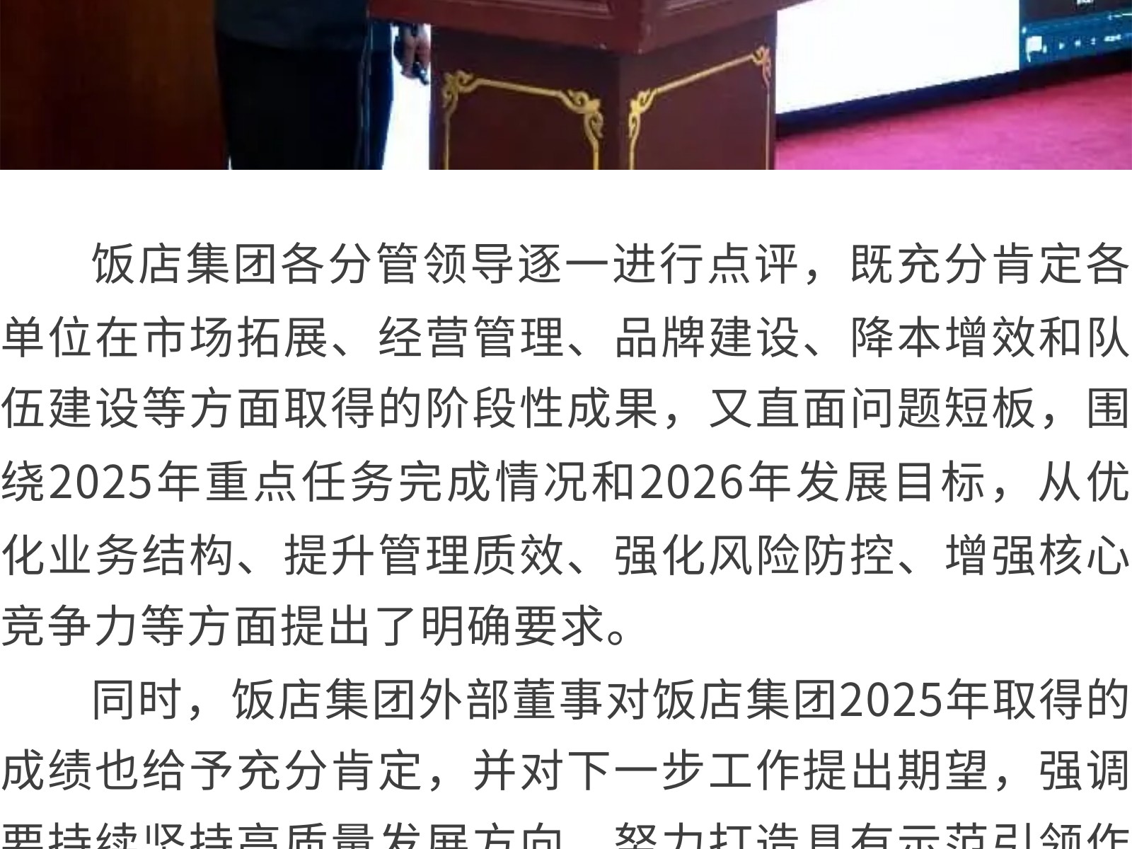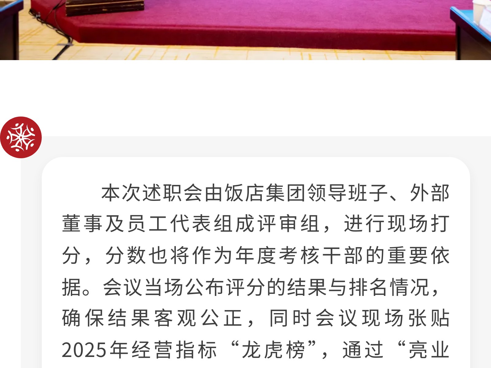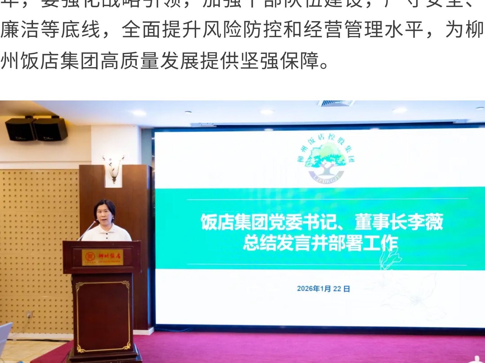 述職亮答卷,乘勢(shì)開(kāi)新局——柳州飯店集團(tuán)召開(kāi)2025年經(jīng)營(yíng)管理干部述職會(huì) 發(fā)布時(shí)間:2026年01月29日 10時(shí)來(lái)源:本站原創(chuàng)瀏覽:3 人次