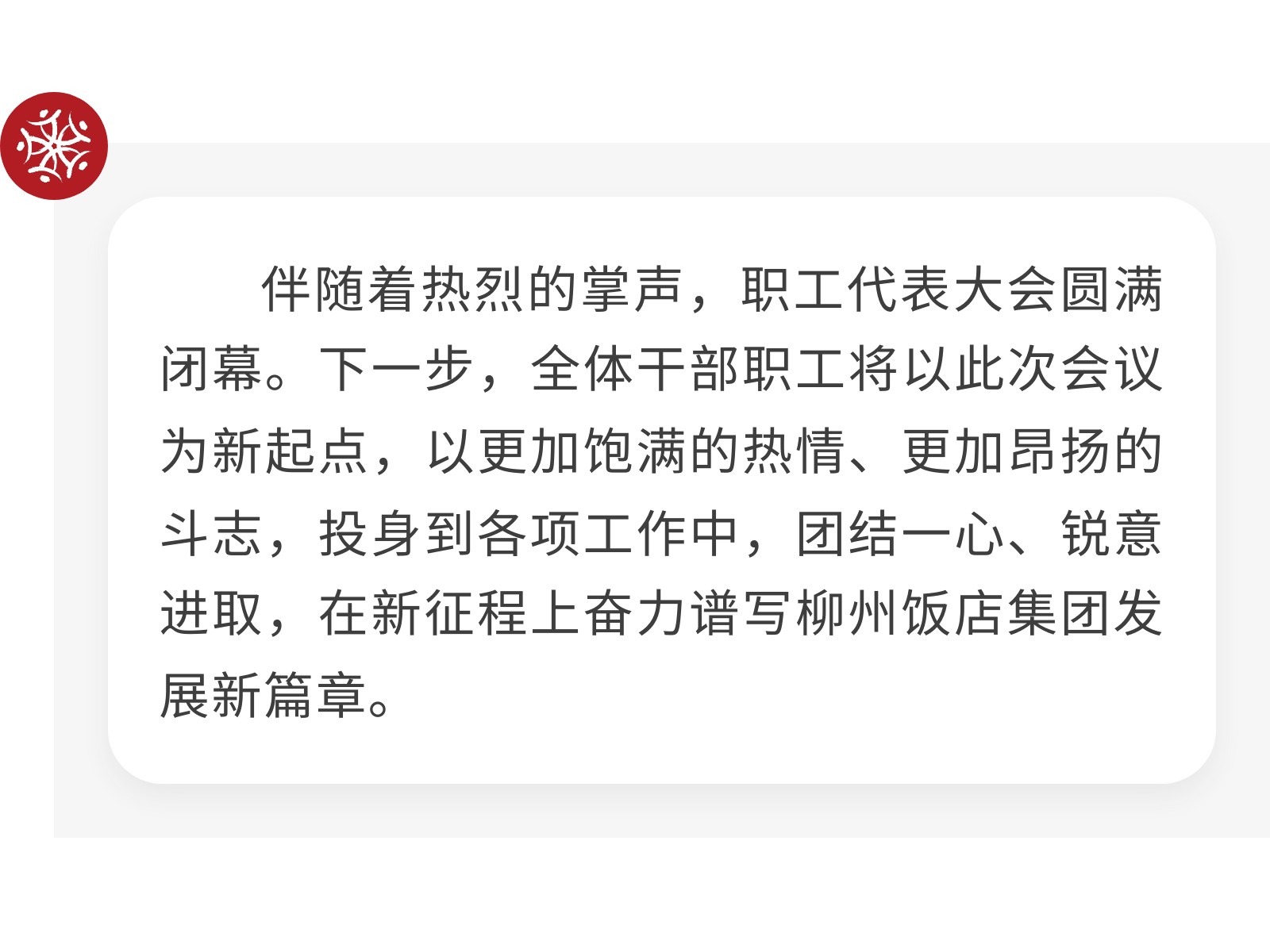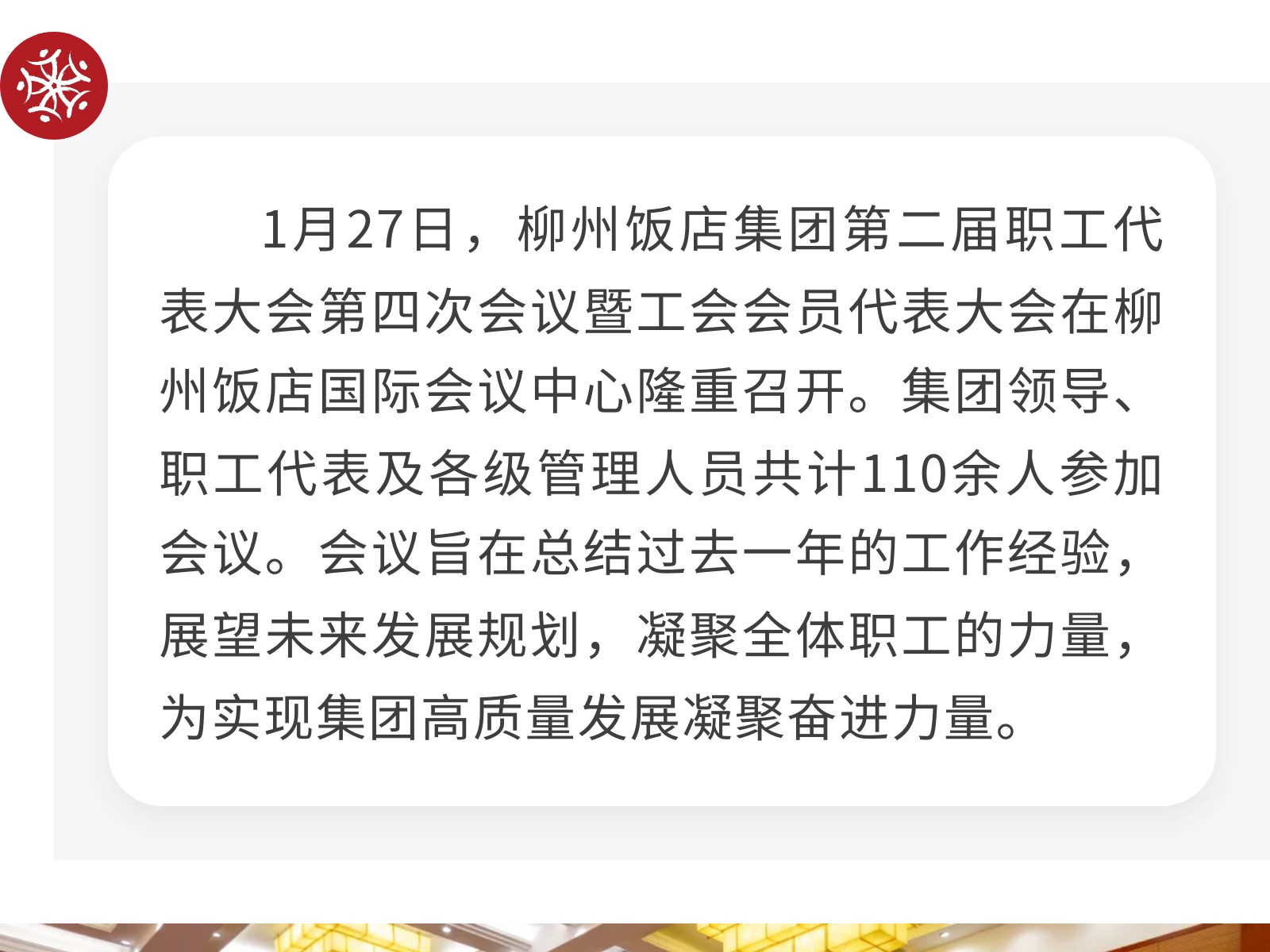 錨定新目標(biāo) 凝心聚力啟新程——柳州飯店集團(tuán)第二屆職工代表大會(huì)第四次會(huì)議暨工會(huì)會(huì)員代表大會(huì)勝利召開(kāi) 發(fā)布時(shí)間:2026年01月30日 10時(shí)來(lái)源:本站原創(chuàng)瀏覽:2 人次